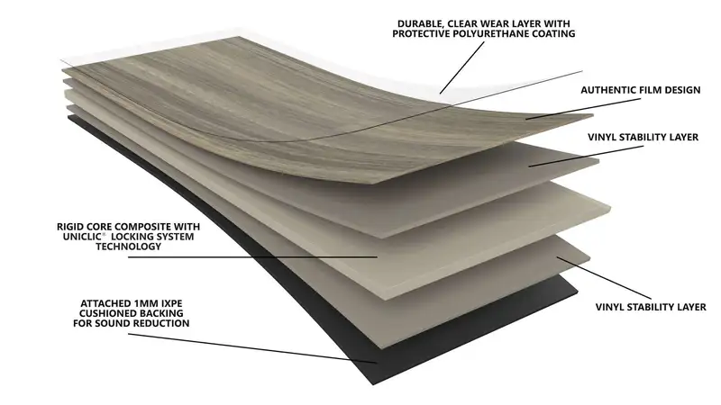 - Wear Layer: The top protective layer defends the floor against scratches, stains, and general wear.